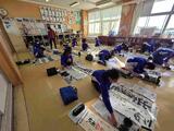 書きぞめに集中して取り組んでいる6年生。さすがです。