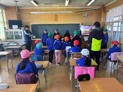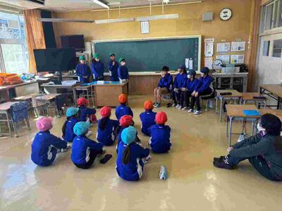 下校で集合した低学年の子どもたちも 一人一人が災害について防災について考えます