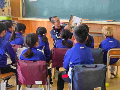 毎月 お世話になっている 北小読み聞かせボランティアきたきつねの皆様による読み聞かせも本日が最終回。