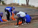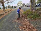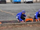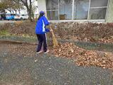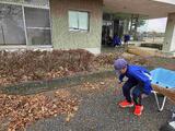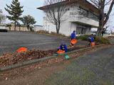 写真は 駐車場の清掃の様子です。落ち葉などをあつめてきれいにしてくれました。
